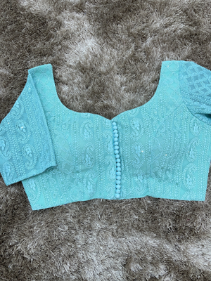 Fabric : Machine Chikankari on georgette base ( Look a like, machine embroidery work)