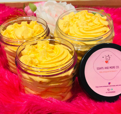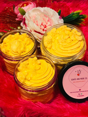 Infused with the goodness of natural ingredients like turmeric, sandalwood, and gram flour, this whipped cream soap deeply hydrates and conditions your skin, promoting a healthy and radiant complexion. The aromatic fragrance uplifts your senses, creating a blissful bathing experience.