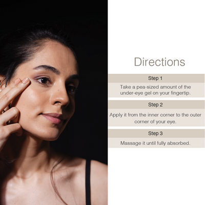 - How to use - Take a small amount of the under-eye gel on your fingertip and gently apply from the inner corner to the outer corner of your eye. Keep massaging it, till the gel is absorbed into the skin.