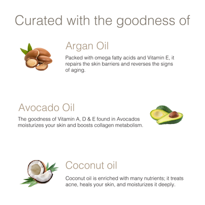 - Ingredients - Aqua, Jojoba oil, Avocado oil, Argan oil, Coconut oil, Vitamin E.
