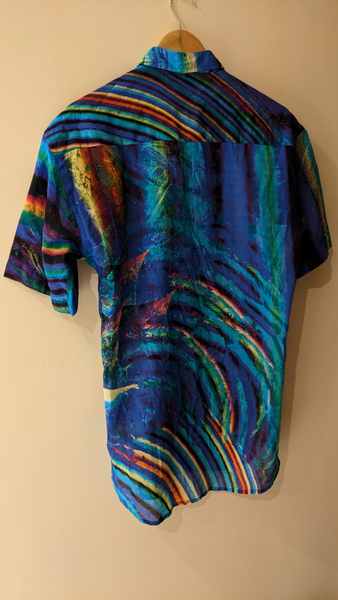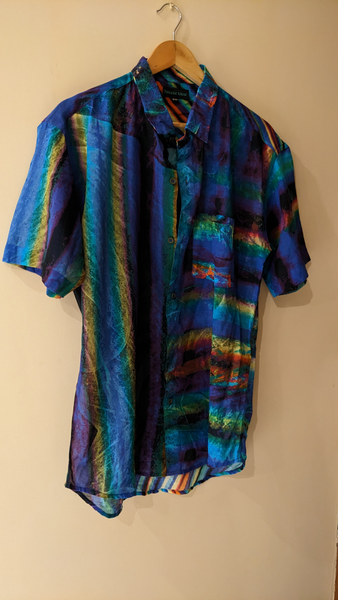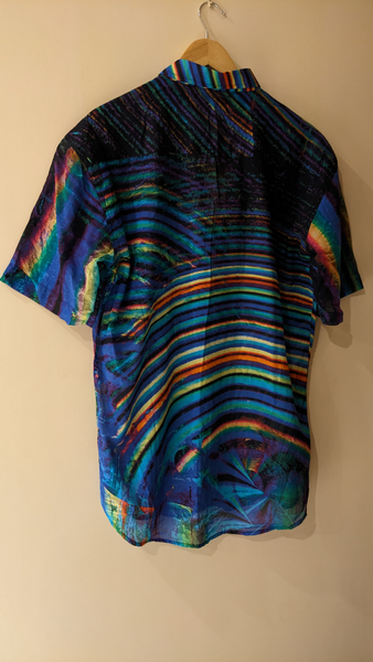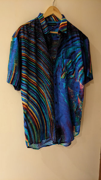 UNISEX SHIRT Fabric: 100% Upcycled Cotton Fabric Channeling an eclectic expression for the wandering soul. At Osmotic Wear, the goal is to upcycle Textile scraps into wearable fashionable products that are unique and impactful. The products are sourced ethically and are upcycled using good cut samples from textile firms. The material is light, airy, summer friendly and durable. For more, visit @osmoticwear on Instagram