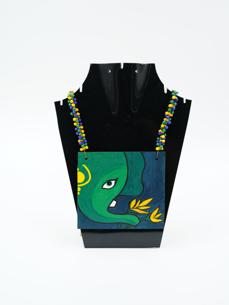 Ganpati bappa maurya!! Our beloved Ganpati ji are here to bless us with all the happiness comfort and will take away all our worries. This beautiful hand painted necklace are painted on large size square board.