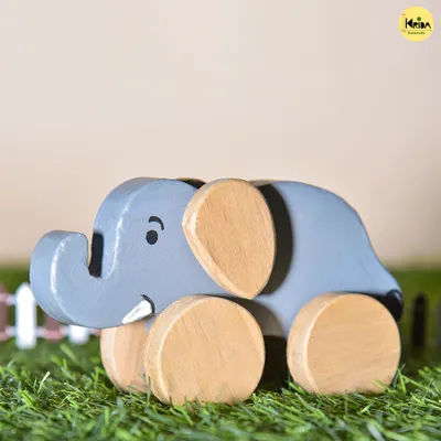 - Features - Wooden Elephant Pull Along Toy Eco Friendly