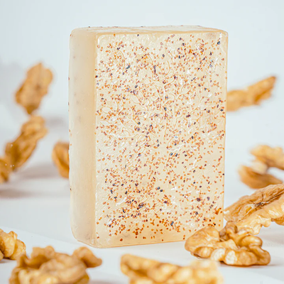 - Benefits - This highly efficient scrub soap mitigates the roughness of your skin and takes complete care of all its moisture and nutrition-related requirements. Rich Walnut shell granules exfoliate skin Basic Cleaning, Antiseptic, Whitening