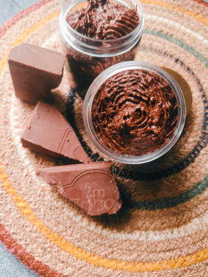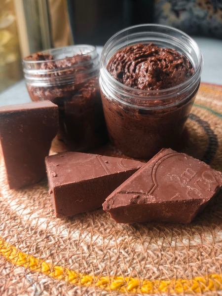 • Ingredients - Ground Coffee bean, Choclate, Olive oil, Coconut oil, Castor oil ,  Mango butter, Shea butter , Jojoba oil , French green clay , Kaolin clay ,  Rosemary, Lavender , Cedarwood , Tea tree essential oils, Sci (coconut derived), coffee essential oil