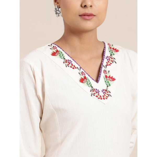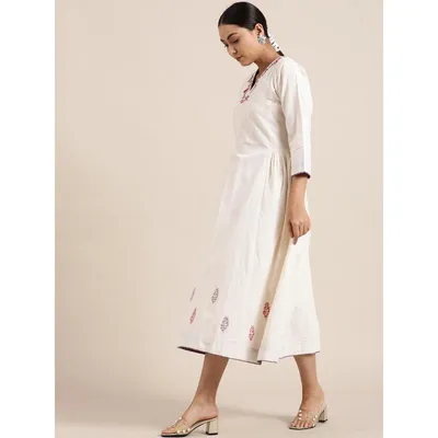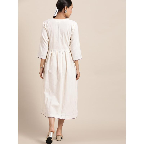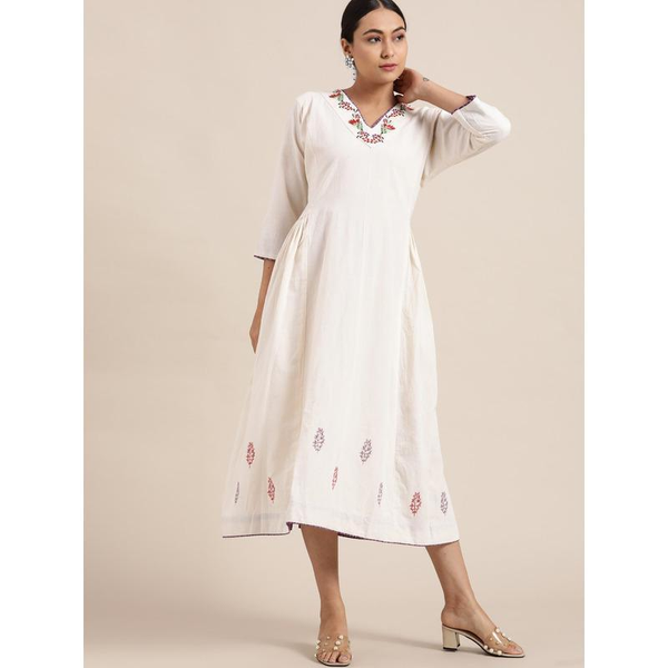 Beautiful Machine embroidery making it look more attractive on White cotton fabric NOTE - DRESSPerfect to break your mundane look. Just throw a pair of muted flats and balance the look with subtle makeup and you're all set to go.CRAFT TECHNIQUE- Machine embroidery