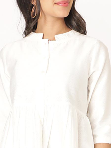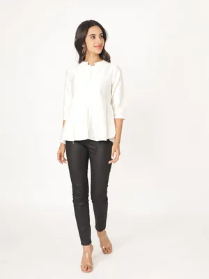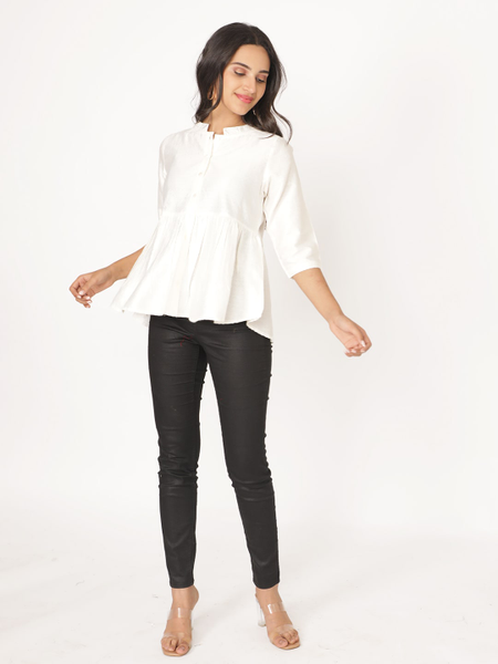 White Cotton Viscose Solid 3/4th Sleeve Top