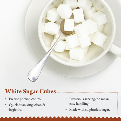 Dhampur Green White Sulphur free Sugar Cubes are a hygienic & luxurious way to sweeten your cup of coffee/ tea. Ideal for cafe and table use. Cubes offer precise portion control in an elegant and no-mess serving. Each cube is equivalent to 1 tsp sugar approx. Avoid counterfeit products sold and shipped directly from the manufacturer. Made with Sulphur free pharma grade sugar. They can be used to sweeten a cold drink, iced tea, coffee, beverages, and cocktails. Quick dissolving, clean & hygienic. Luxurious serving, easy handling. Ideal for travel & table-use for a non-messy serving.