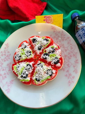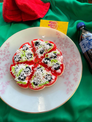 Here u get whole pizza with 5 Slices containing olives and capsicum with cheese ( that's soap ofcourse) grated on top.