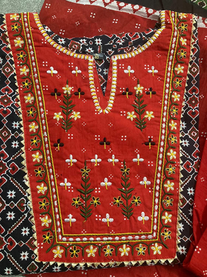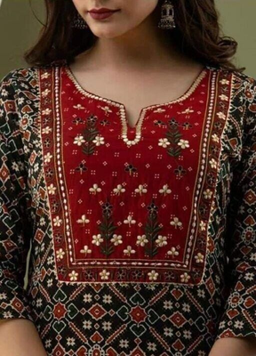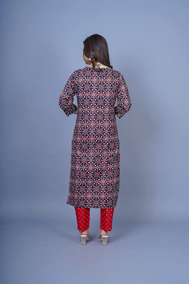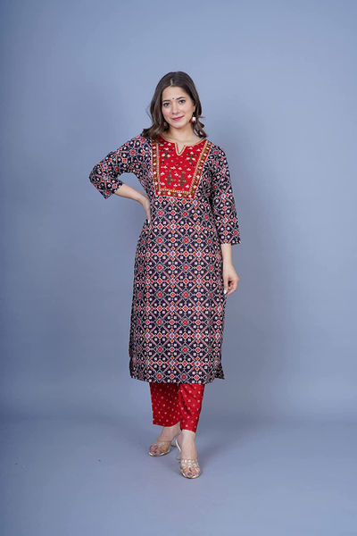 Women's Cotton Embrodiery Work Printed Straight Kurta With Pant