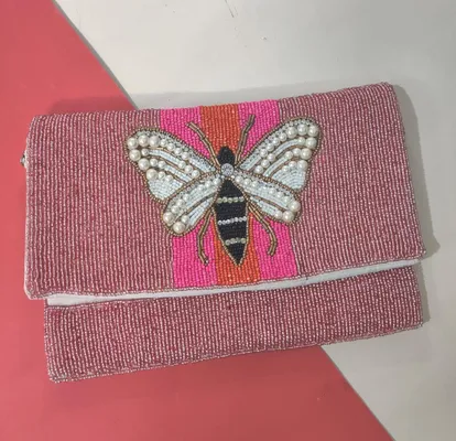 Women's Designer Handmade Beaded Butterfly Sling Bag With String