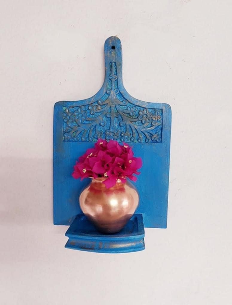 Woodcarved Wall Mountable/table Top Shelf Display Frame.handmade. Rustic Blue