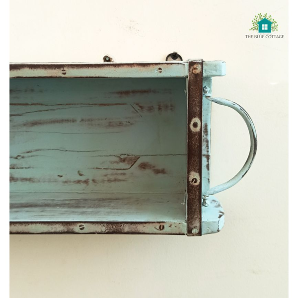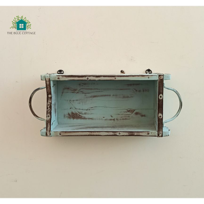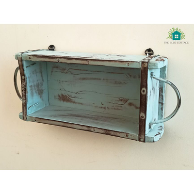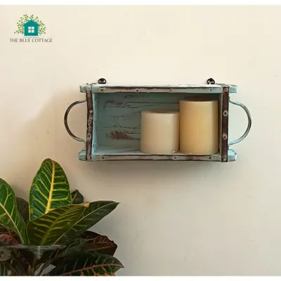 Wooden Antique Wall Decor Storage Shelf With Blue Distress Finish
