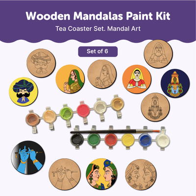 Wooden Mandala Painting Kit - Coaster DIY Kit Set of 6