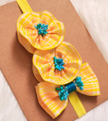 Yellow And Orange Stripped Design Flower Headband.