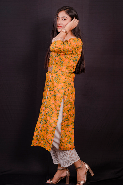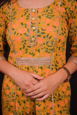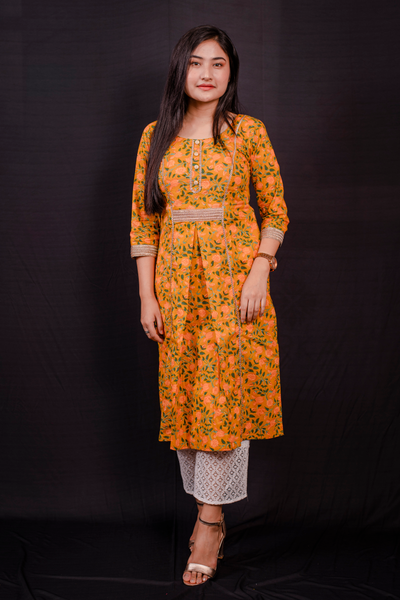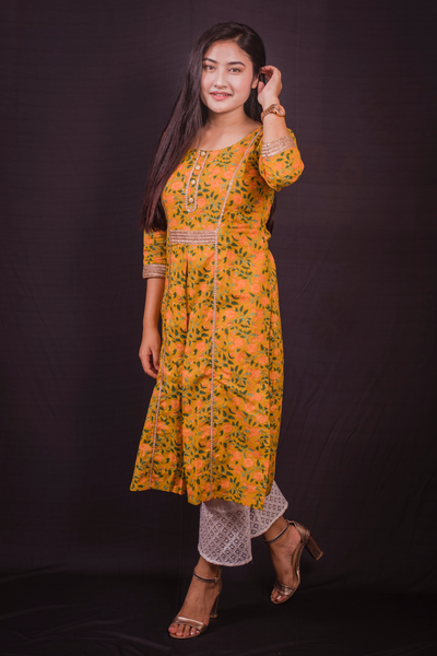 Yellow Color Floral Printed Cotton Kurti