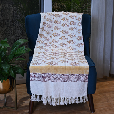 Add colors to your living space with this vibrant collection of trend setting sofa throw blanket, exclusively designed and created using India's ancient art of hand block printing on handloom cotton fabric. Embellished with tassels, this cotton handloom throw blankets can be used to decor sofa , accent or arm chair and bed. This sofa throw blanket is also a perfect choice for any housewarming and wedding gift.