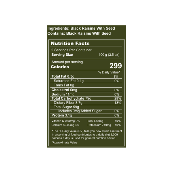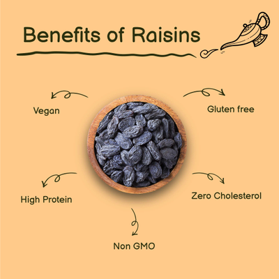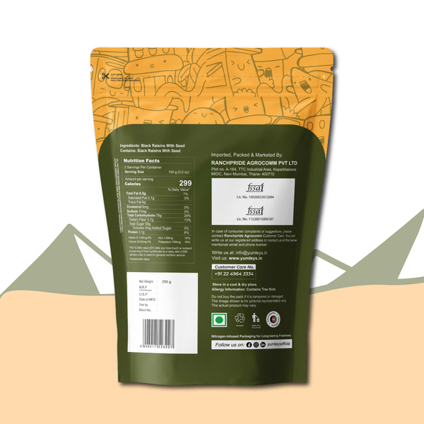 Superior Taste: Yumleys' black raisins not only promote health but also offer a superior, sweet flavor. They are conveniently seedless, making the entire consumption process hassle-free.