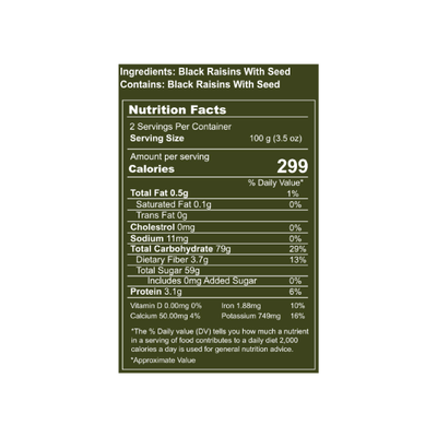 Zero Preservatives: These delightful dried black grapes are 100% free of any preservatives, including sugar and other natural additives, ensuring purity.