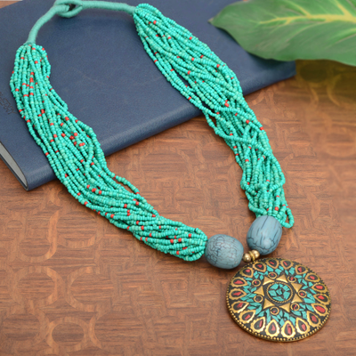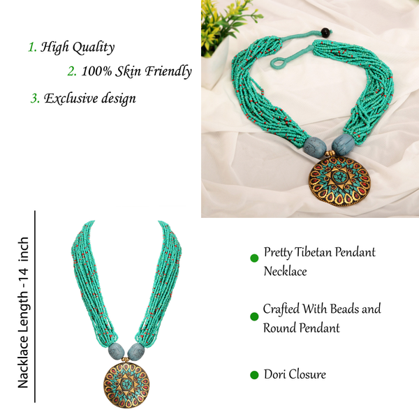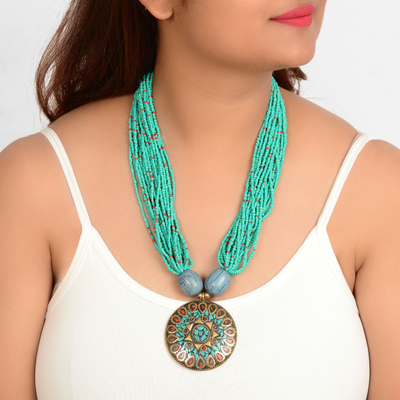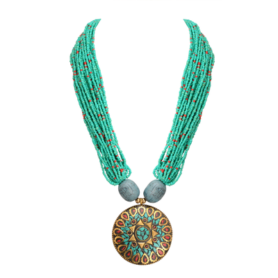 • Zephyrr offers multistrand Tibetan pendant necklace.