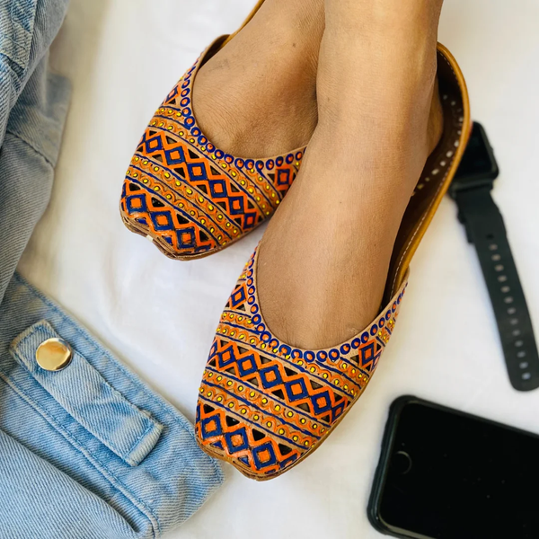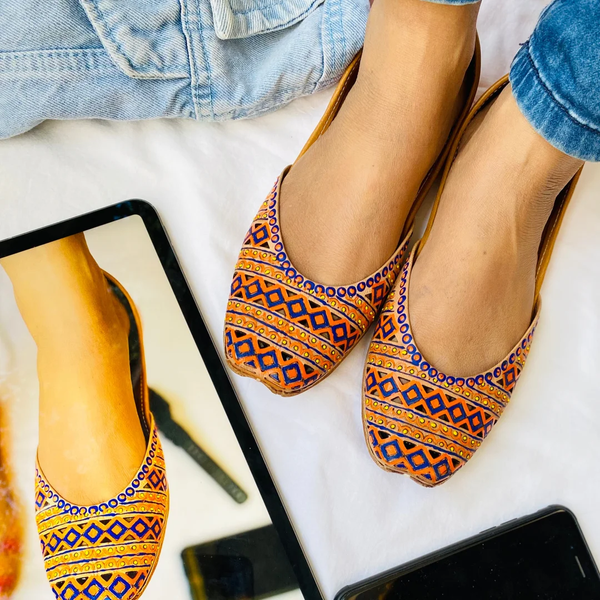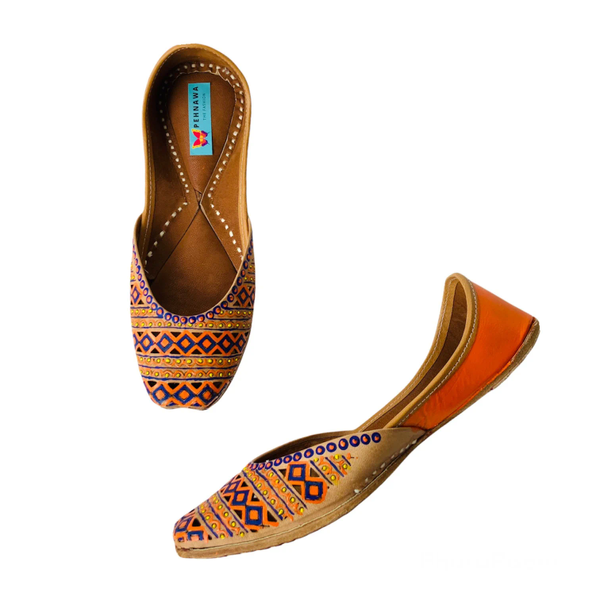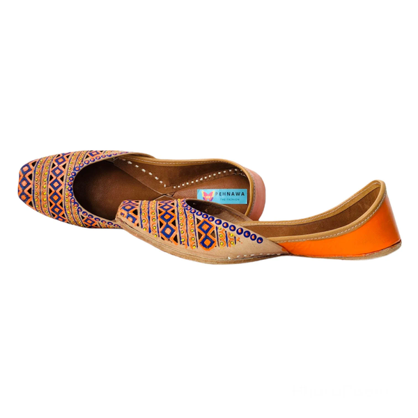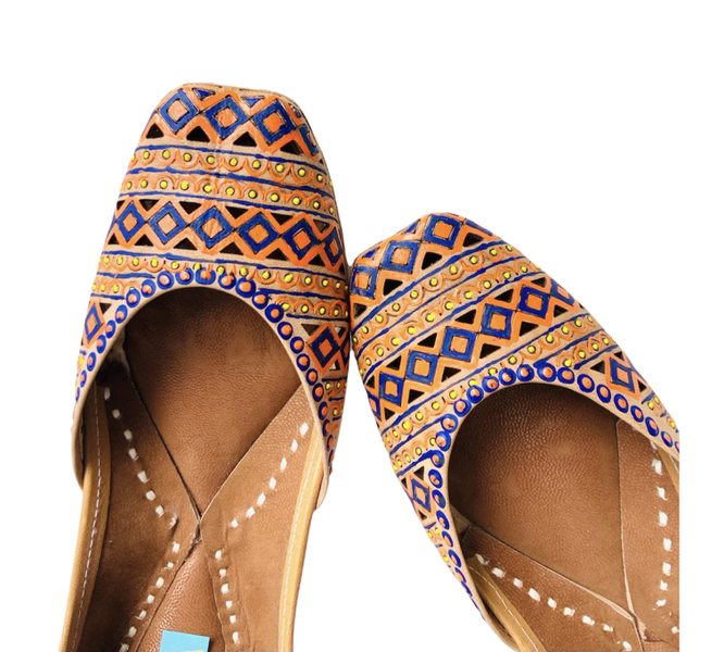 This geometrical pattern design is fully handpainted and take a great deal of effort to make this beautiful pair for you.MakeBringing Art from walls to your footwear.It takes 9-12 hours for our artists & artisans to craft this beautiful pair.Since they are all hand painted & handcrafted slight inconsistencies in color might be visible sometimes, which makes these juttis unique and adds charm to the product.PackagingAll our pairs comes in beautiful designed Pehnawacraft box , carefully wrapped with paper cover.The box contains :Thank you Card with a surprise discount offer!Customization Card explaining our customization processGorgeous Satin silk Pink Potli bag (* Only with prepaid orders)How to take care?Keep away from waterWipe with muslin cloth if the attracts dustShipping | Return & Exchange: Please checkout the details here – https://pehnawacraft.com/index.php/terms-condition/Be Unique. Customize it!